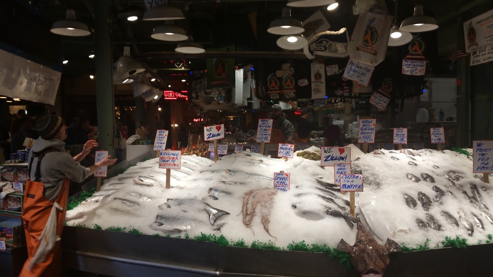 I'm not sure exactly when it started, but you may have seen this event on TV somewhere. The fishmongers throw the customer's orders across the counter while yelling. It is actually pretty cool.